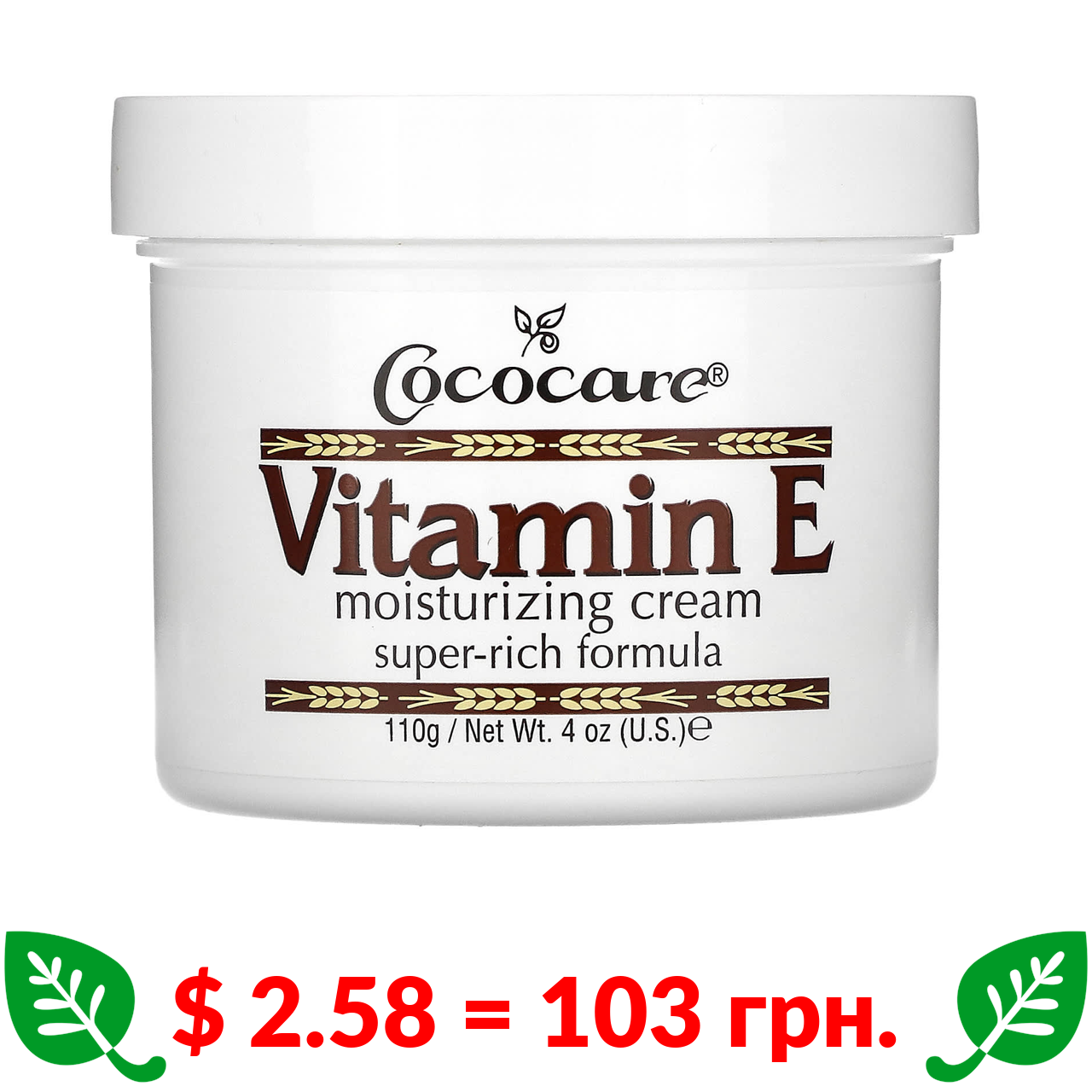 $ 2.58 = 103 грн. Cococare, Vitamin E Moisturizing Cream, 4 oz (110 g)