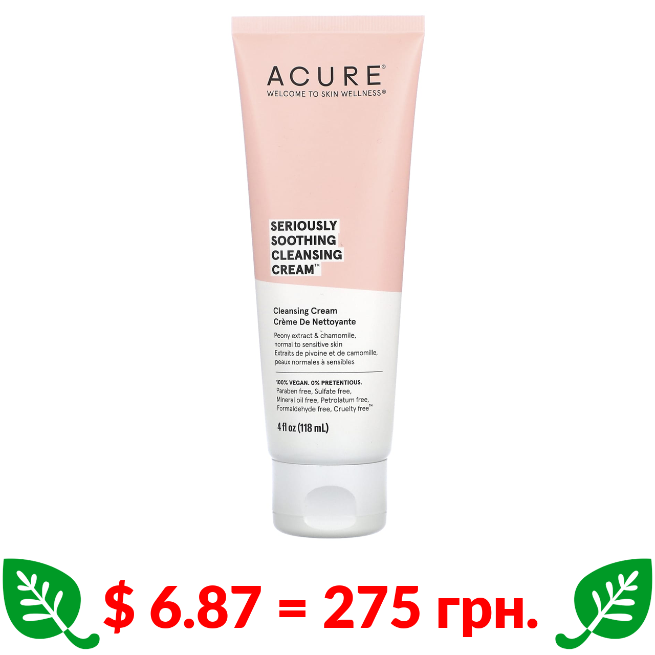 $ 6.87 = 275 грн. ????️ у кошику ????️ ACURE, Seriously Soothing, Cleansing Cream, 4 fl oz (118 ml)