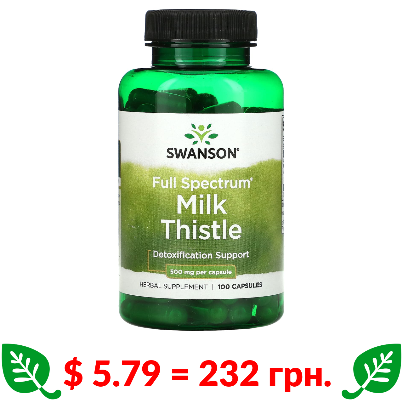 $ 5.79 = 232 грн. Swanson, Full Spectrum Milk Thistle, Detoxification, 500 mg, 100 Capsules