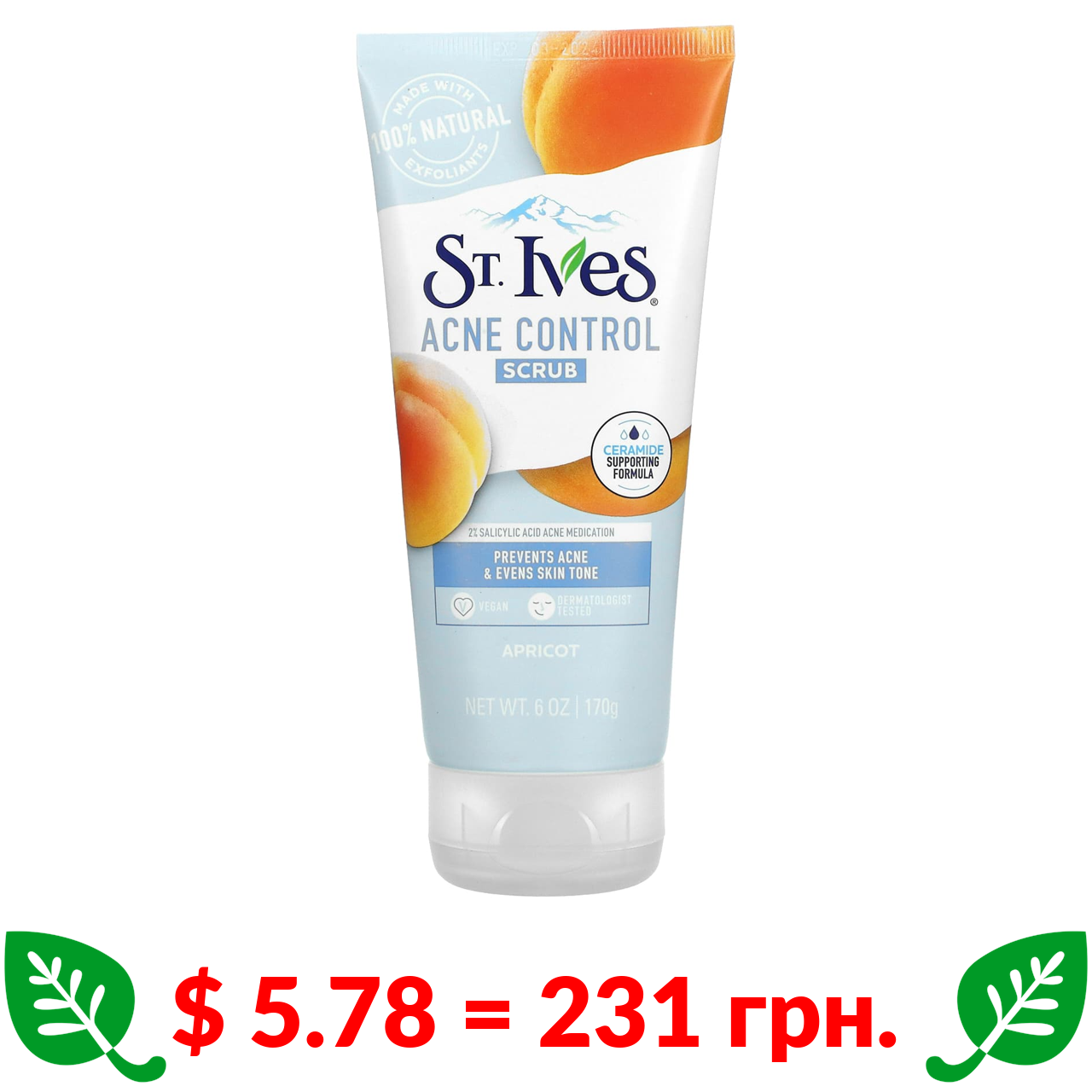 $ 5.78 = 231 грн. ????️ у кошику ????️ St. Ives, Acne Control, абрикосовий скраб від акне, 170 г (6 унцій)
