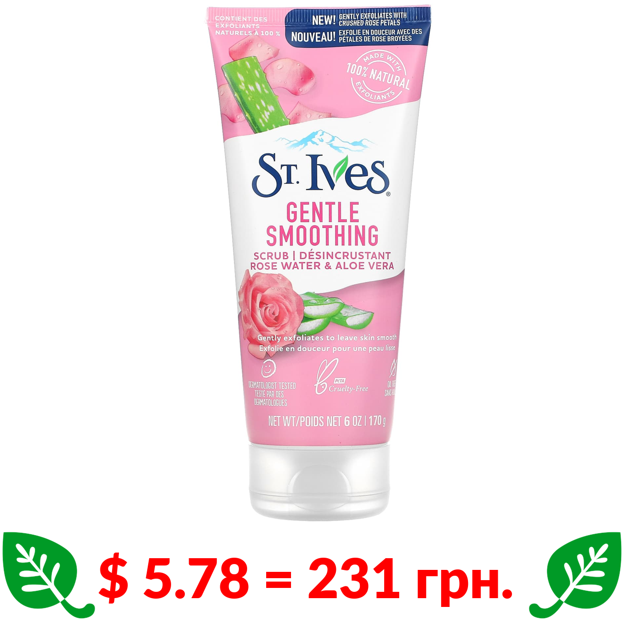 $ 5.78 = 231 грн. ????️ у кошику ????️ St. Ives, Gentle Smoothing Scrub, Rose Water & Aloe Vera, 6 oz (170 g)