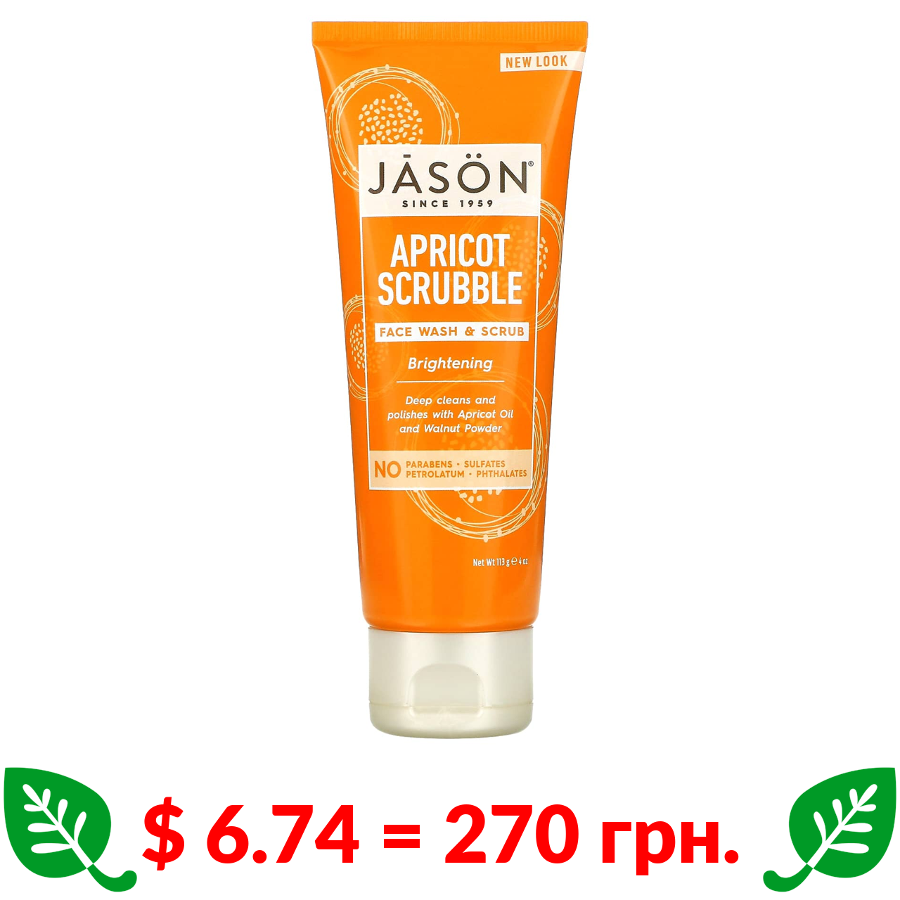 $ 6.74 = 270 грн. ????️ у кошику ????️ Jason Natural, Brightening Apricot Scrubble, Facial Wash & Scrub, 4 oz (113 g)