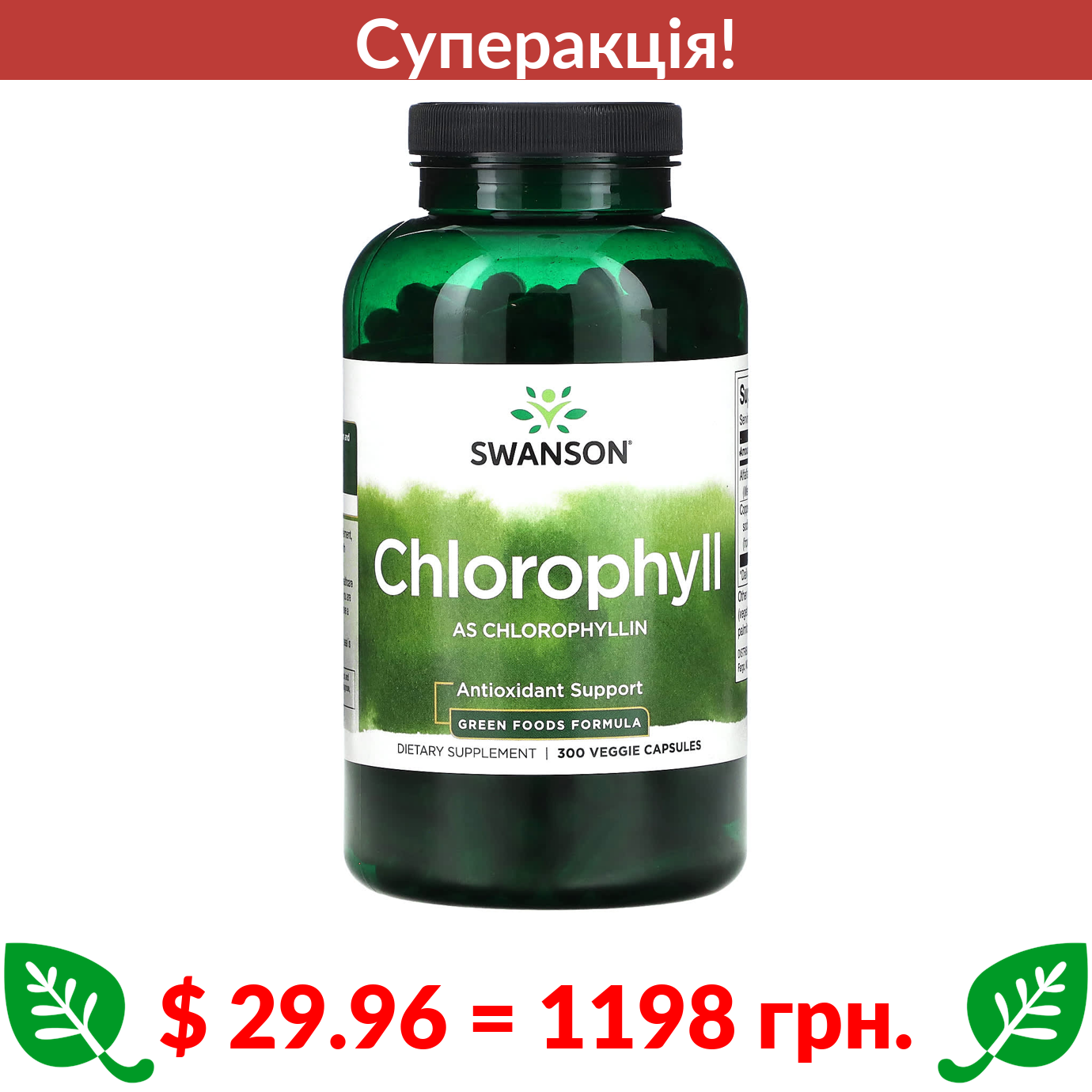 $ 29.96 = 1198 грн. ???? cуперакція! ???? Swanson, хлорофіл, 300 вегетаріанських капсул