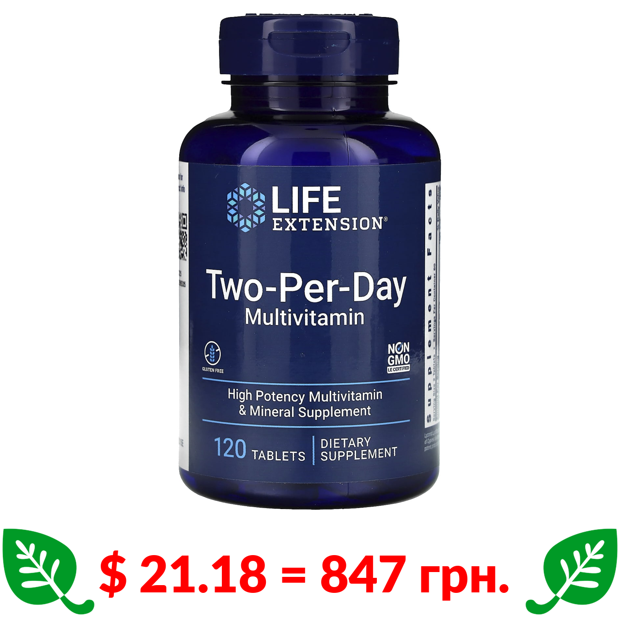 $ 21.18 = 847 грн. Life Extension, мультивітаміни для приймання двічі на день, 120 таблеток