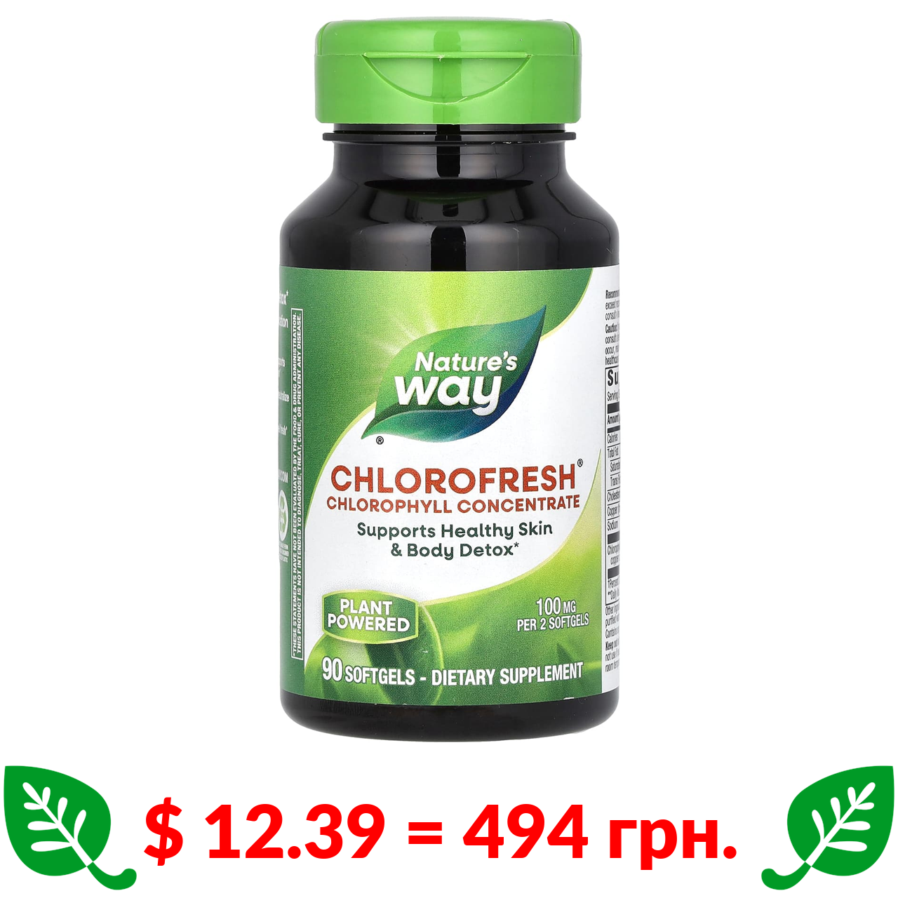 $ 12.39 = 494 грн. ????️ у кошику ????️ Nature’s Way, Chlorofresh, концентрований хлорофіл, 100 мг, 90 капсул (50 мг у капсулі)
