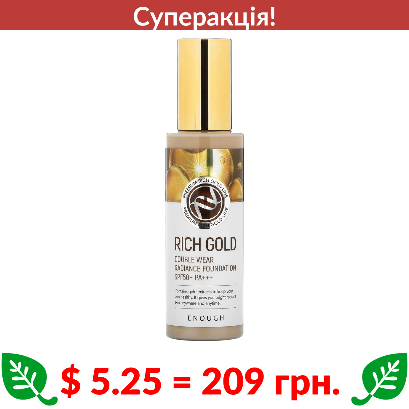 $ 5.25 = 209 грн. ???? cуперакція! ???? Enough, Rich Gold, Double Wear Radiance Foundation, SPF50+ PA+++, #21, 3.53 oz (100 g)