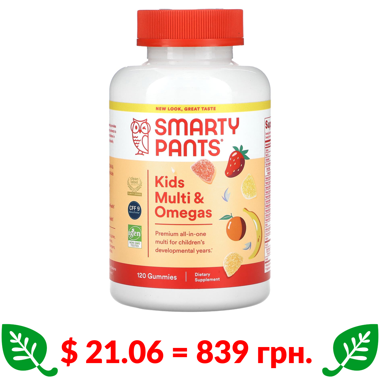 $ 21.06 = 839 грн. ????️ у кошику ????️ SmartyPants, добавка для дітей, мультивітаміни з омега-3, полуниця, банан, апельсин і лимон, 120 жувальних мармеладок