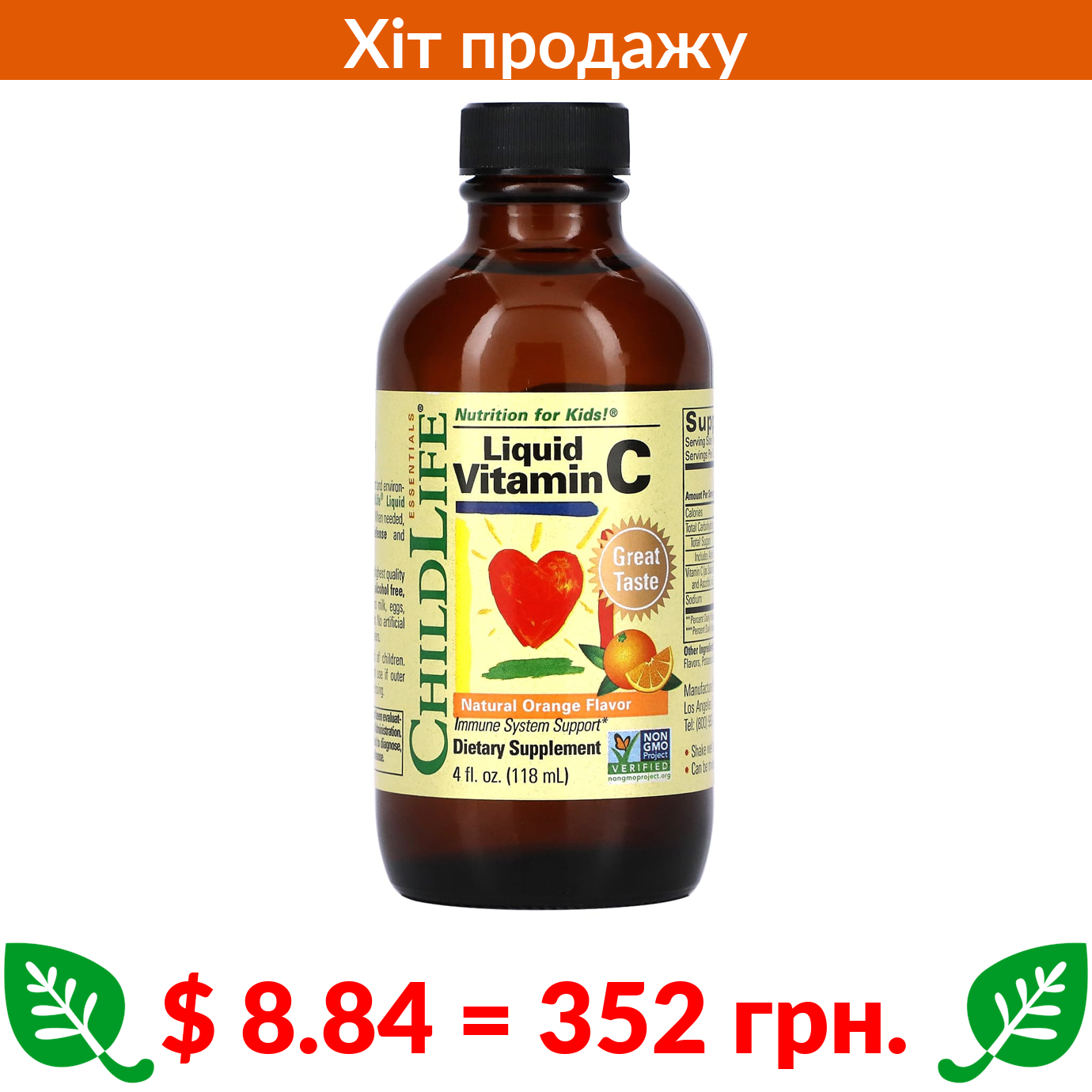$ 8.84 = 352 грн. ChildLife Essentials, Essentials, рідкий вітамін C, натуральний апельсин, 118,5 мл (4 рідк. унції)