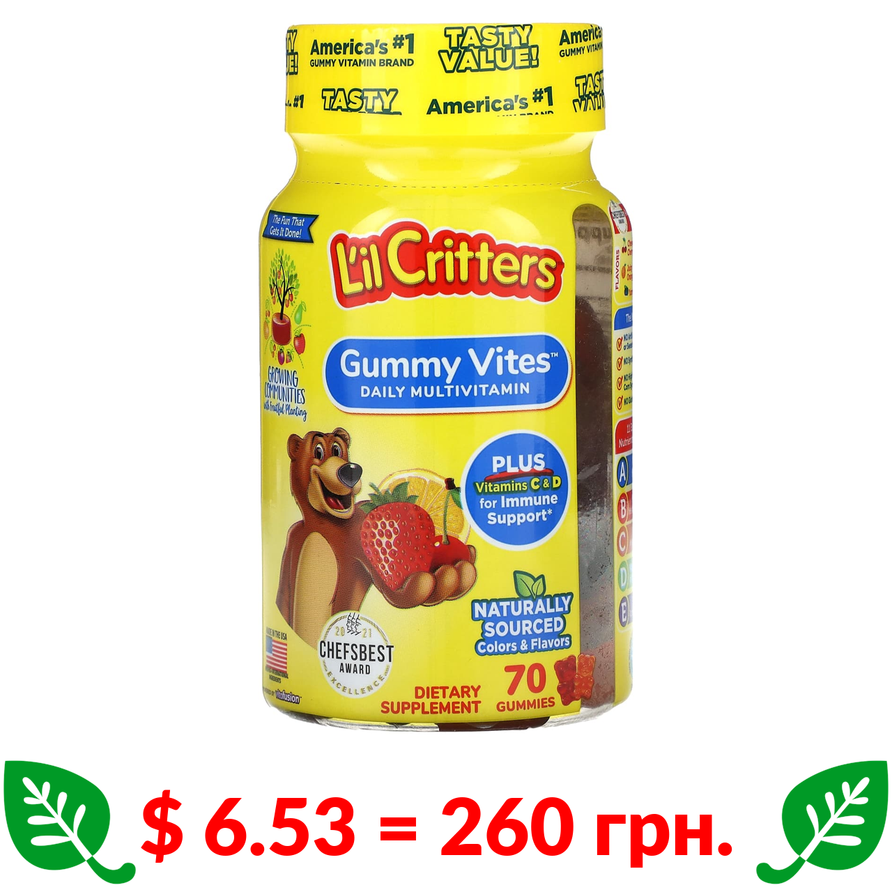 $ 6.53 = 260 грн. ????️ у кошику ????️ L’il Critters, Gummy Vites, комплекс жувальних мультивітамінів, 70 мармеладок