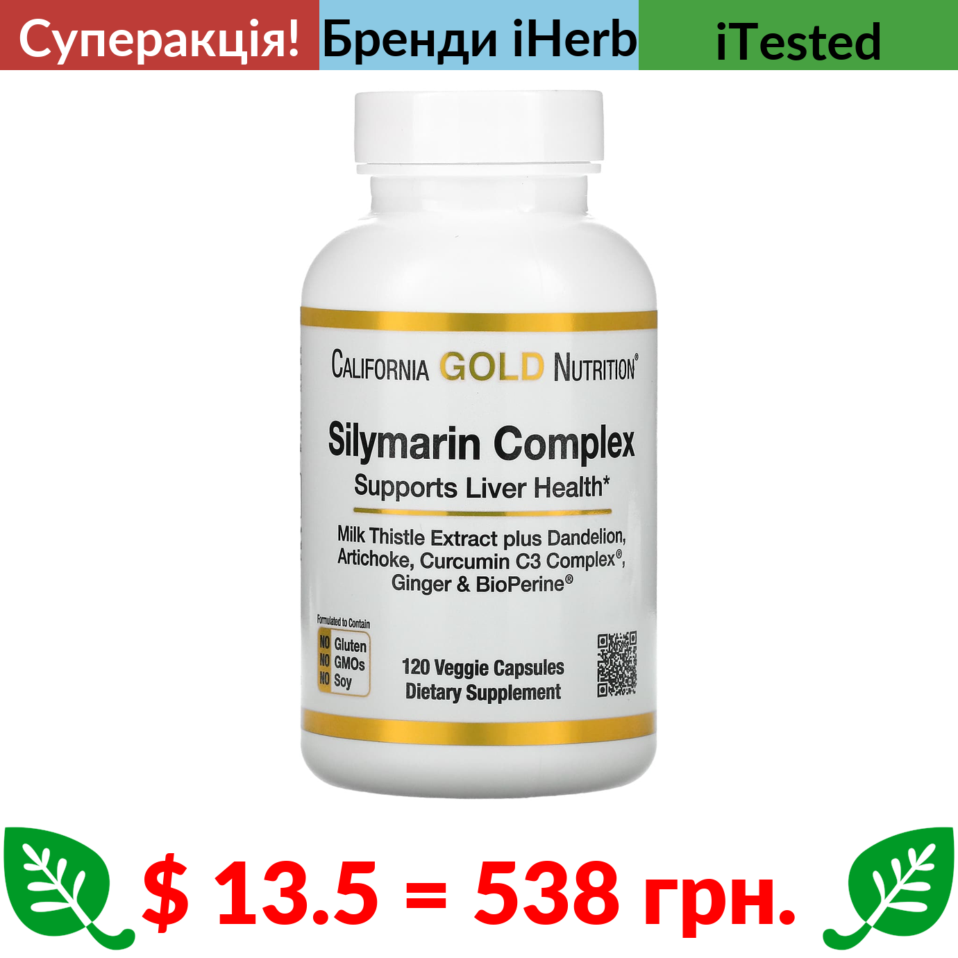 $ 13.5 = 538 грн. ???? cуперакція! ???? California Gold Nutrition, силімариновий комплекс, екстракт розторопші, кульбаба, артишок, куркумін Curcumin C3 Complex, імбир і BioPerine, 120 вегетаріанських капсул