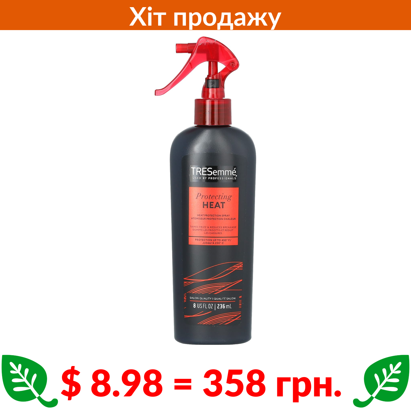 $ 8.98 = 358 грн. Tresemme, Thermal Creations, незмивний термозахисний спрей, 236 мл (8 рідк. унцій)