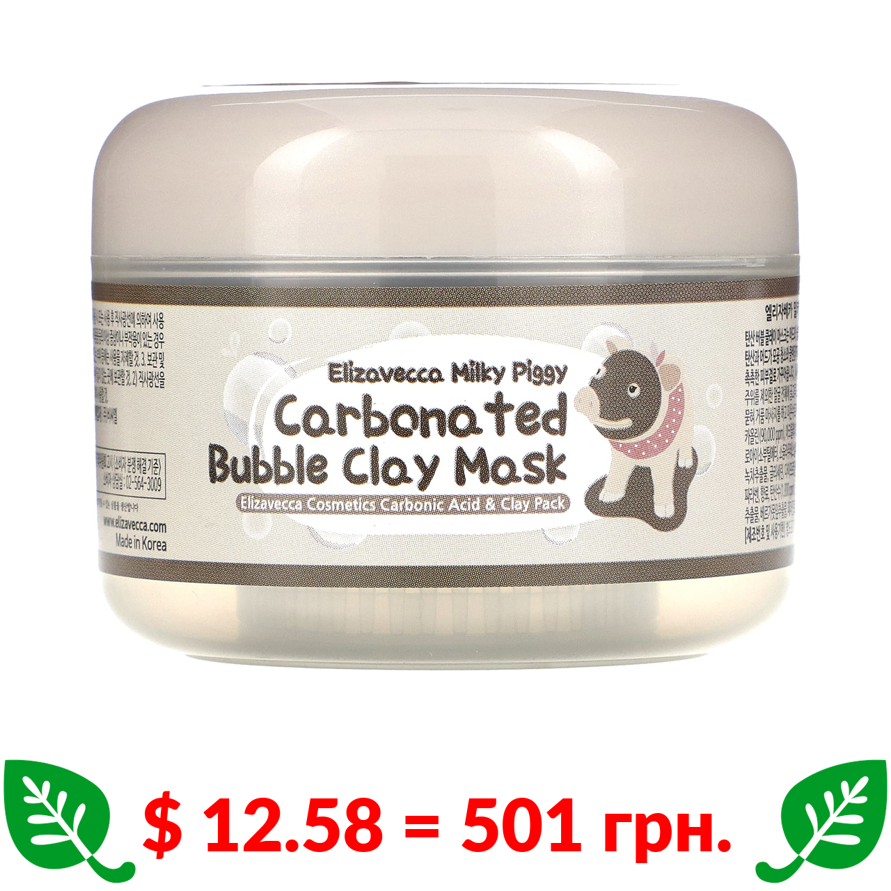 $ 12.58 = 501 грн. Elizavecca, Milky Piggy, карбонізована глиняно-бульбашкова маска, 100 г