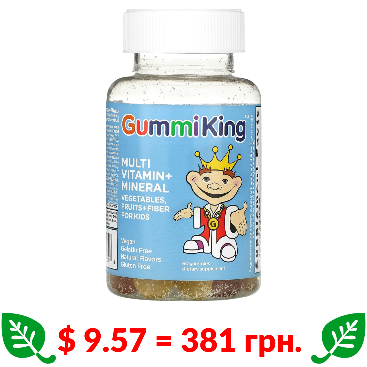 $ 9.57 = 381 грн. ????️ у кошику ????️ GummiKing, мультивітаміни та мікроелементи, овочі, фрукти та клітковина для дітей, 60 жувальних таблеток