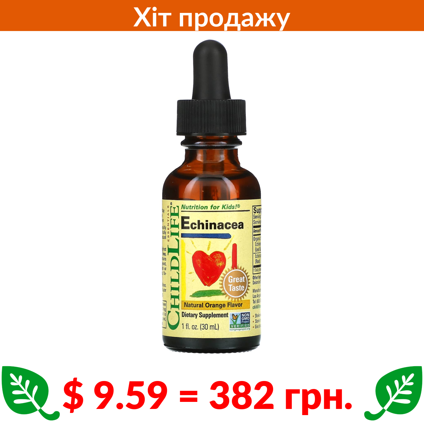 $ 9.59 = 382 грн. ChildLife Essentials, Essentials, ехінацея, зі смаком натурального апельсина, 30 мл (1 рідк. унція)