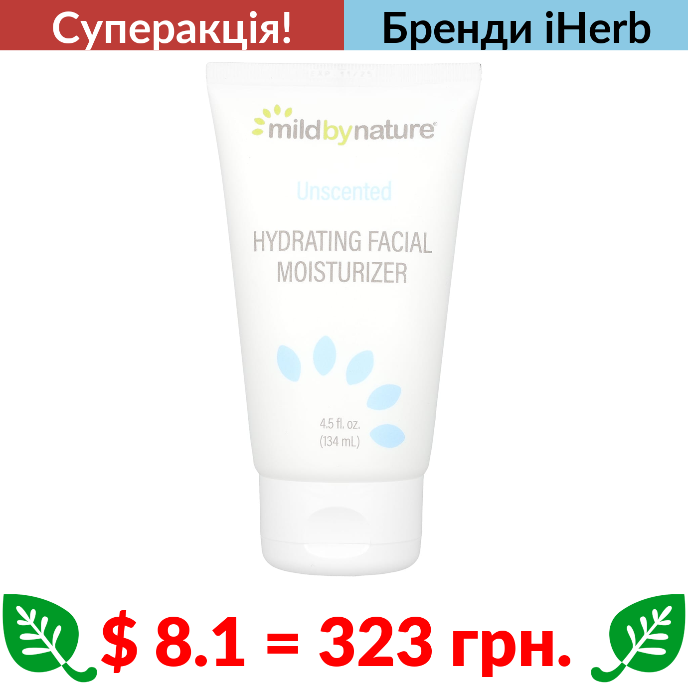 $ 8.1 = 323 грн. ???? cуперакція! ???? Mild By Nature, зволожувальний крем для обличчя, без ароматизаторів, 134 мл (4,5 рідкої унції)