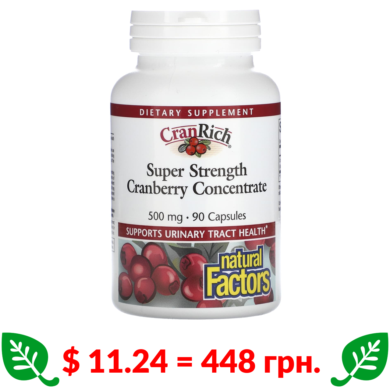 $ 11.24 = 448 грн. Natural Factors, CranRich, Super Strength, концентрат журавлини, 500 мг, 90 капсул