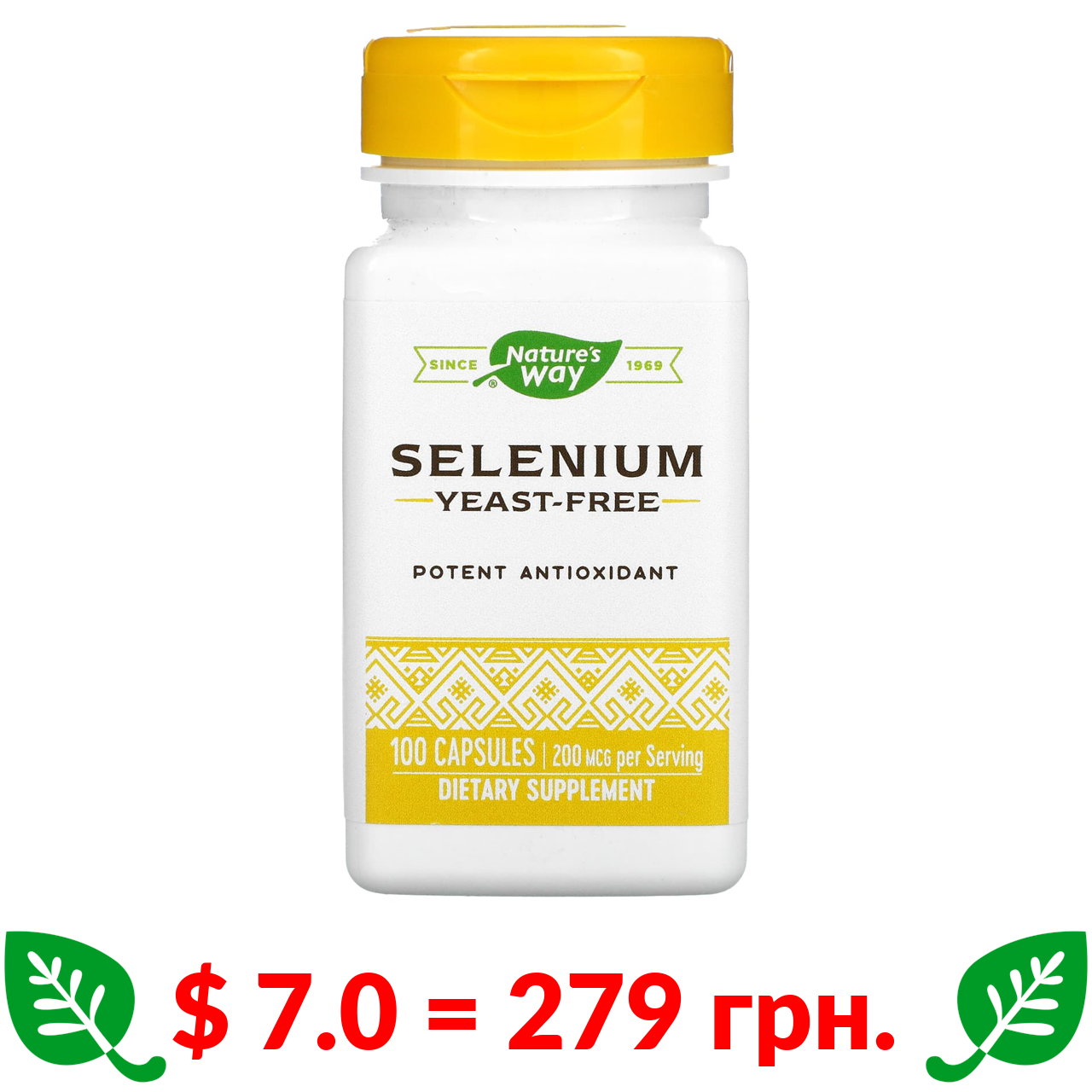 $ 7.0 = 279 грн. ????️ у кошику ????️ Nature’s Way, селен, 200 мкг, 100 капсул