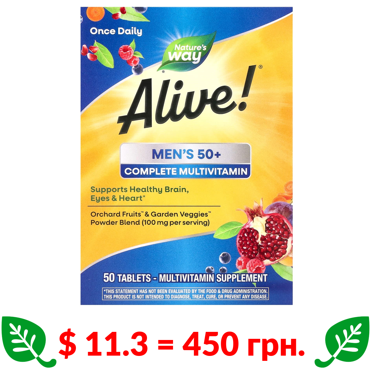 $ 11.3 = 450 грн. ????️ у кошику ????️ Nature’s Way, Alive! комплексні мультивітаміни для чоловіків від 50 років, 50 таблеток