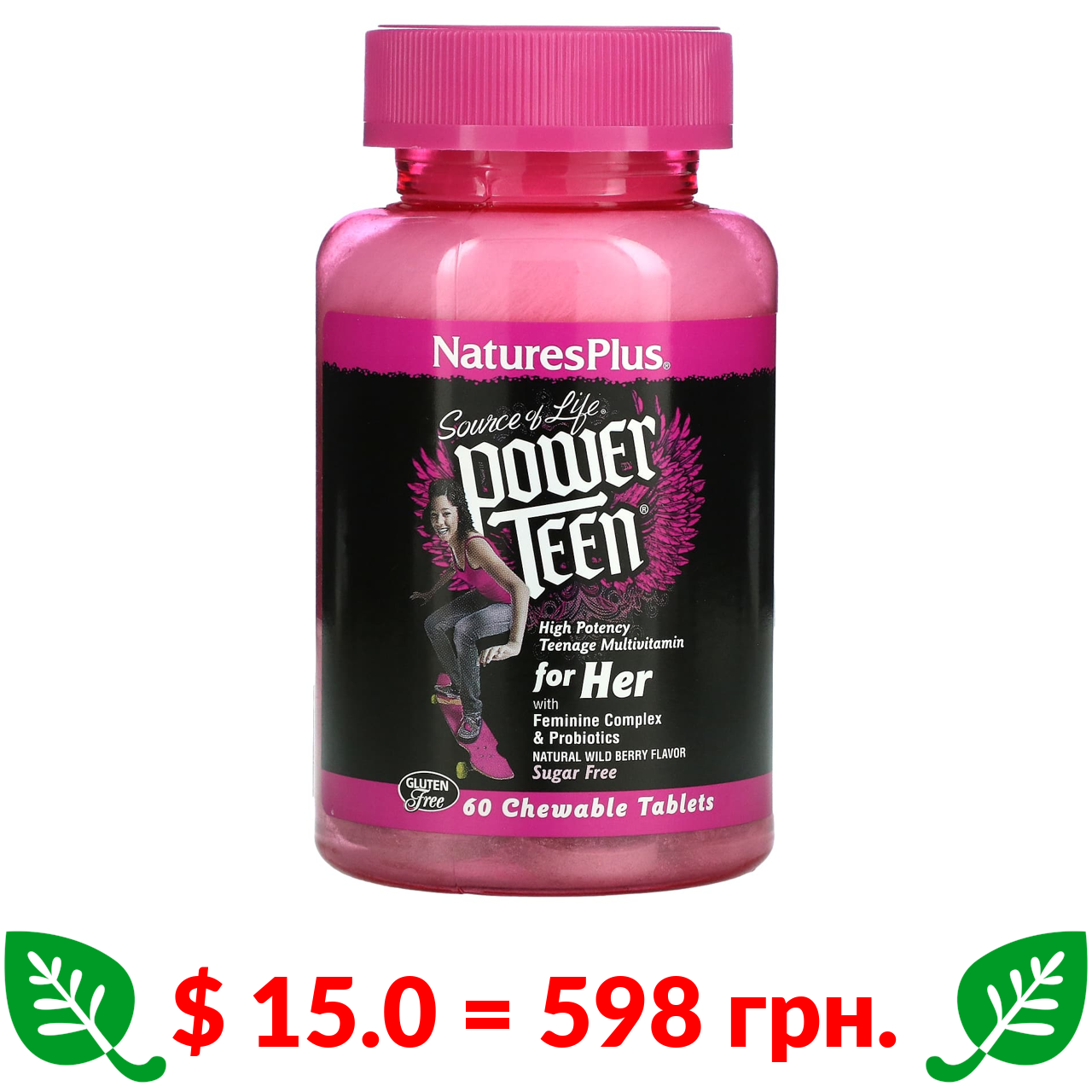 $ 15.0 = 598 грн. ????️ у кошику ????️ Nature’s Plus, Source of Life, Power Teen, добавка для дівчаток-підлітків, без цукру, з натуральним смаком лісових ягід, 60 жувальних таблеток