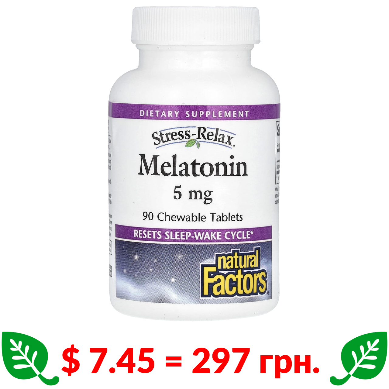 $ 7.45 = 297 грн. Natural Factors, Melatonin, 5 mg, 90 Chewable Tablets