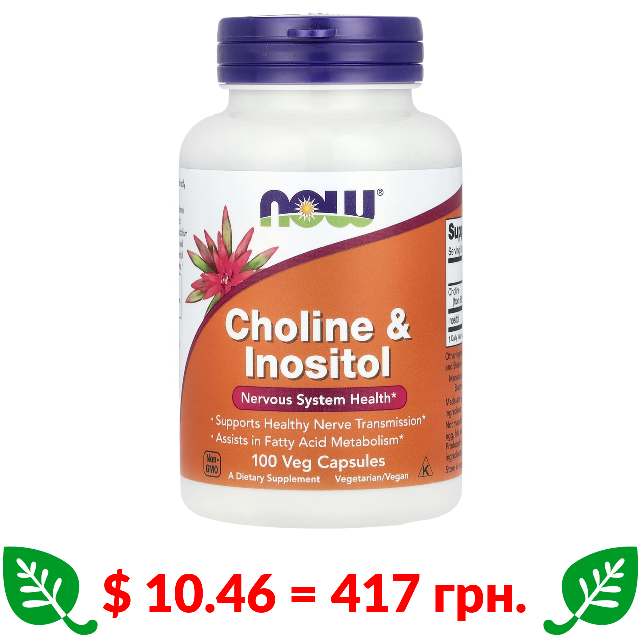 $ 10.46 = 417 грн. Now Foods, холін та інозитол, 100 вегетаріанських капсул