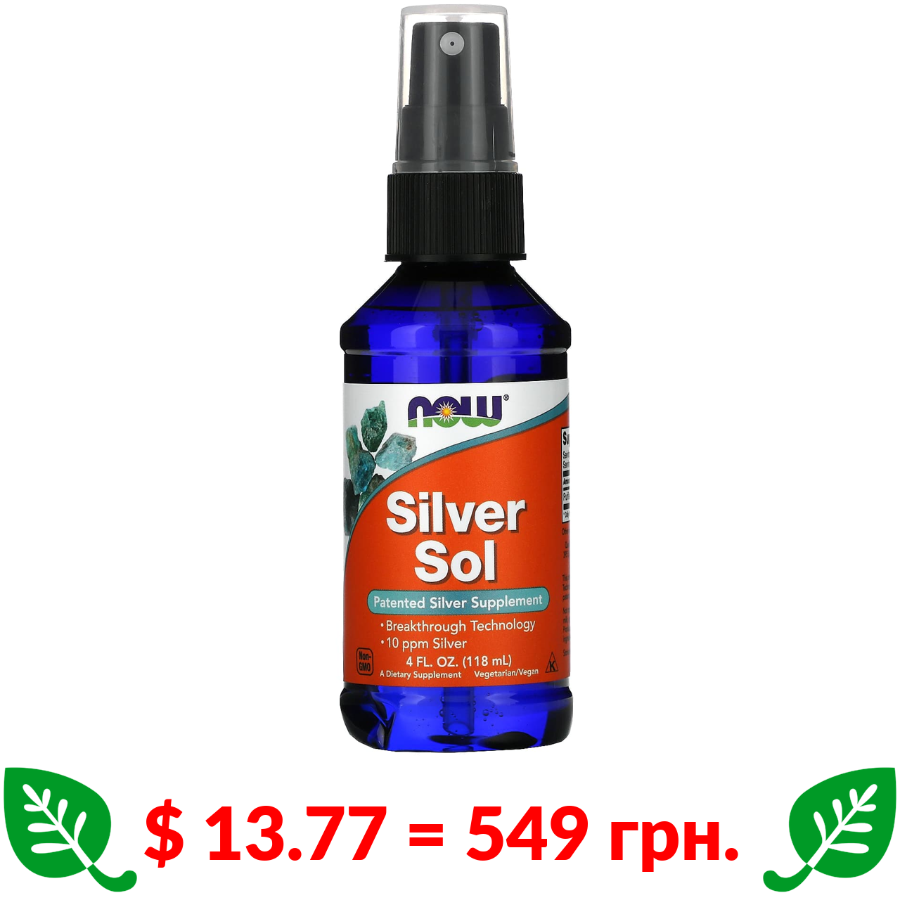 $ 13.77 = 549 грн. Now Foods, колоїдне срібло, 118 мл (4 рідк. унції)