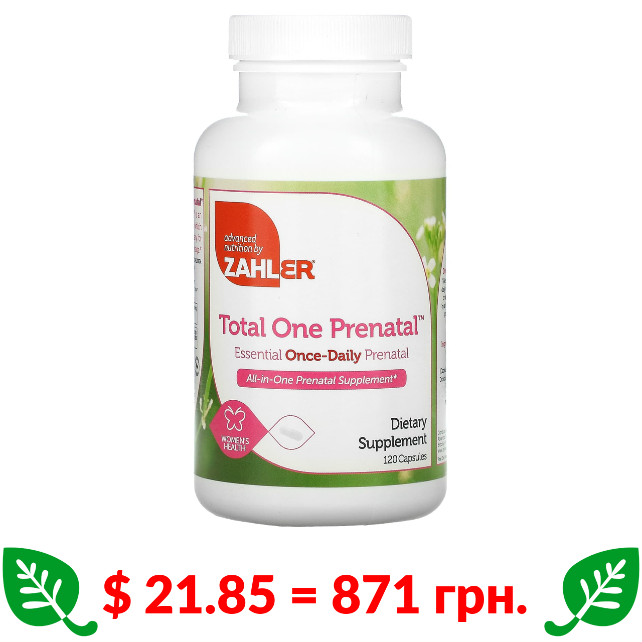 $ 21.85 = 871 грн. ????️ у кошику ????️ Zahler, Total One Prenatal, вітаміни для вагітних, 120 капсул