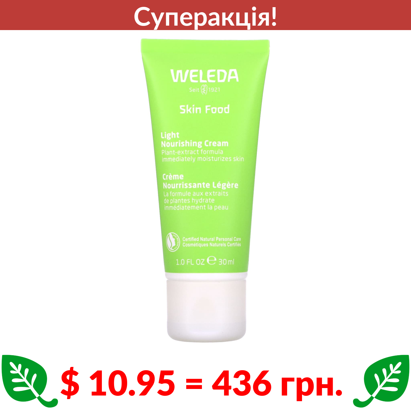 $ 10.95 = 436 грн. ???? cуперакція! ???? Weleda, Skin Food, Light Nourishing Cream, 1.0 fl oz (30 ml)