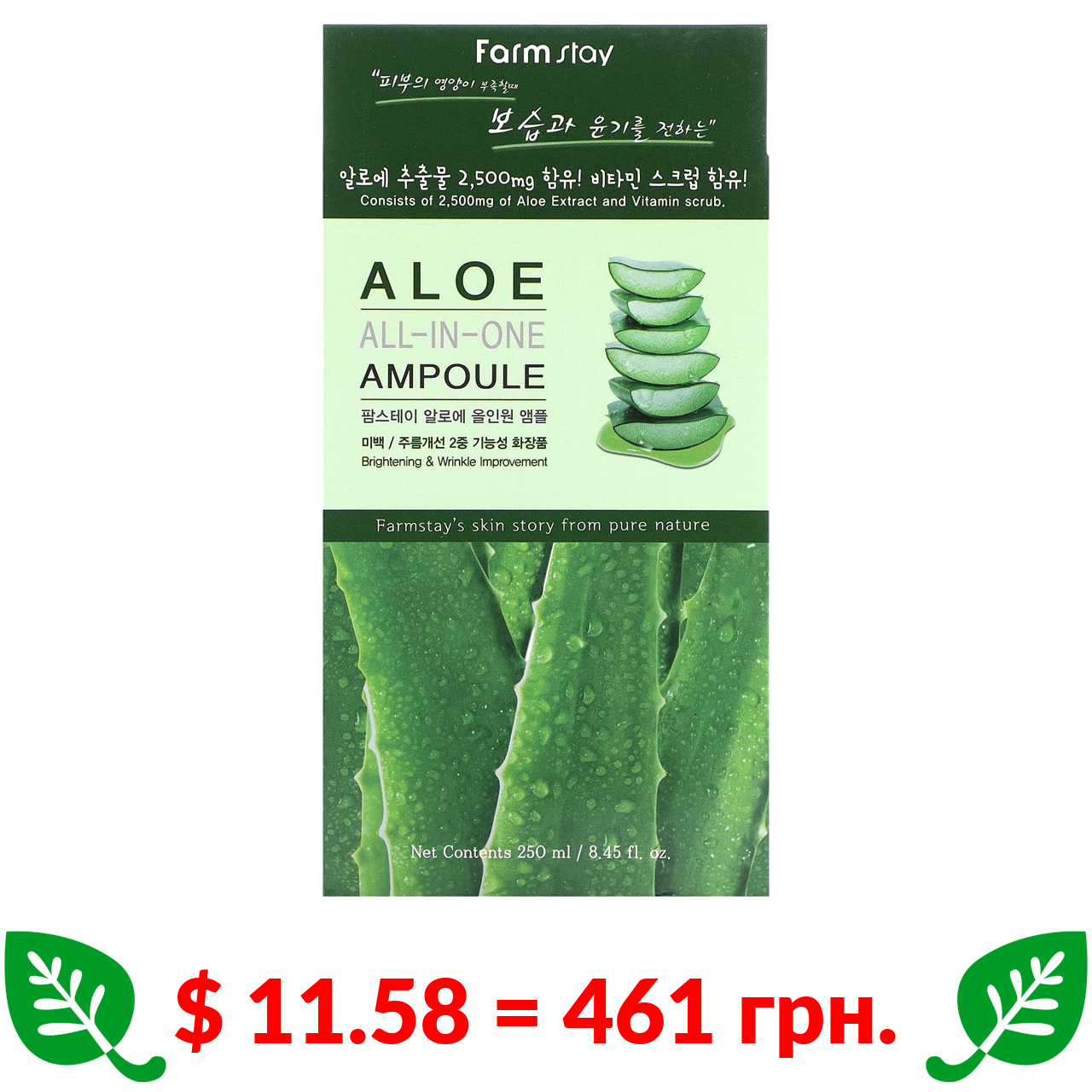 $ 11.58 = 461 грн. Farmstay, All-In-One Ampoule, Aloe, 8.45 fl oz (250 ml)