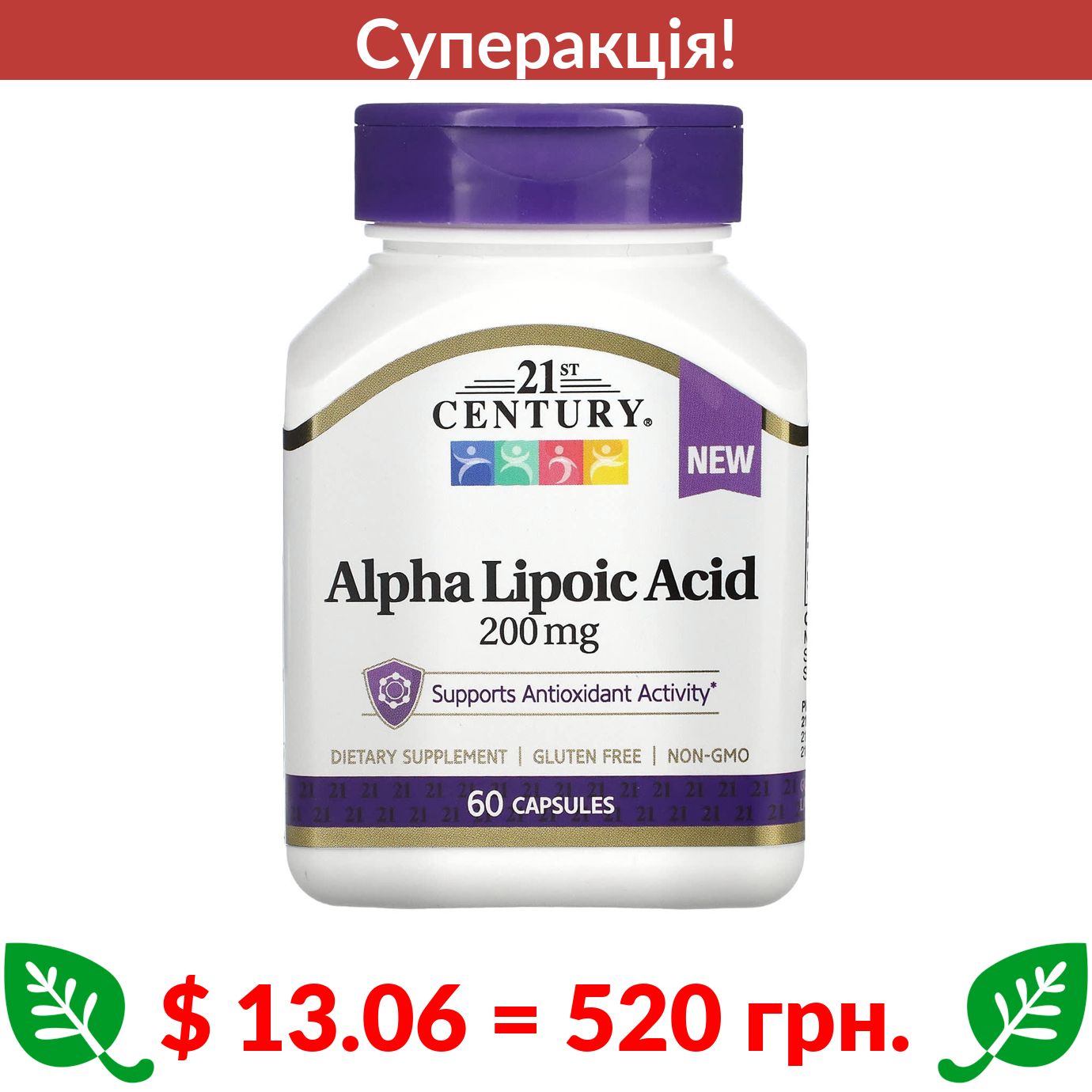 $ 13.06 = 520 грн. ???? cуперакція! ???? 21st Century, Alpha Lipoic Acid, 200 mg, 60 Capsules