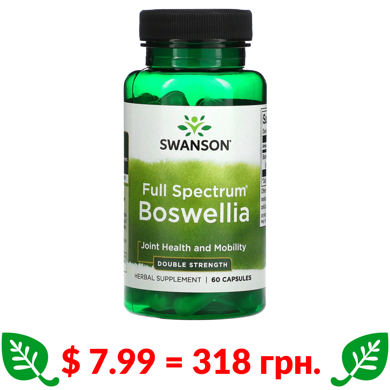 $ 7.99 = 318 грн. Swanson, босвелія повного спектру дії, подвійна сила, 60 капсул