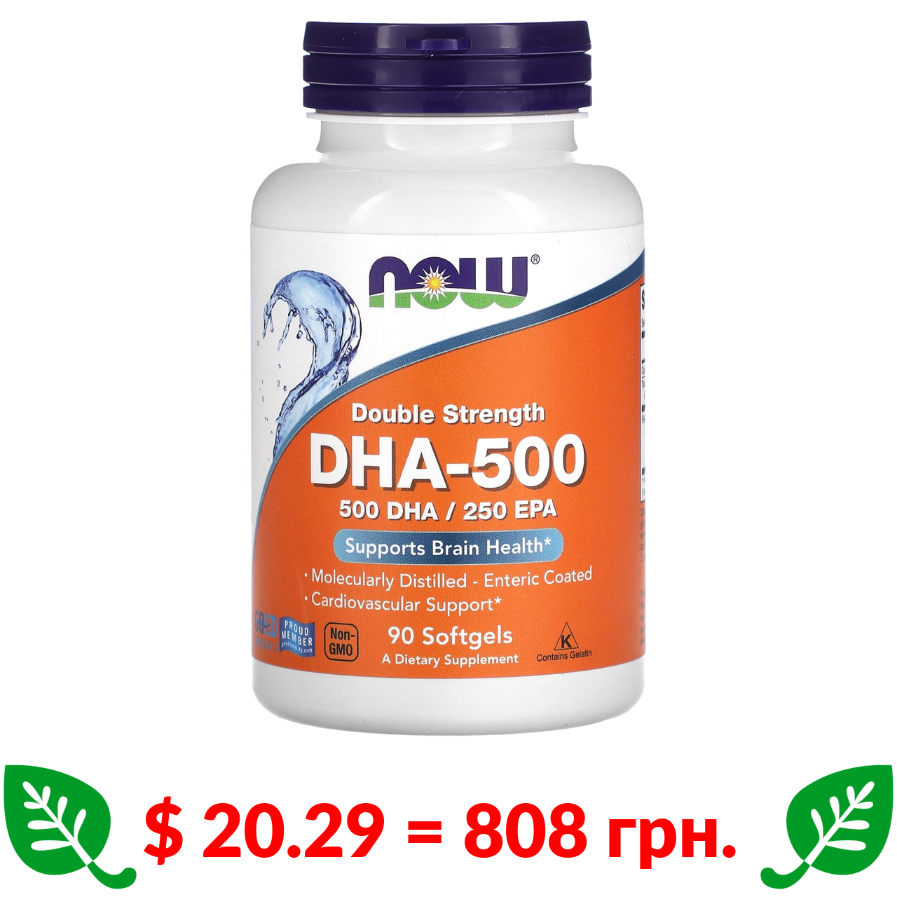 $ 20.29 = 808 грн. Now Foods, ДГК-500, риб’ячий жир подвійної сили, 90 капсул