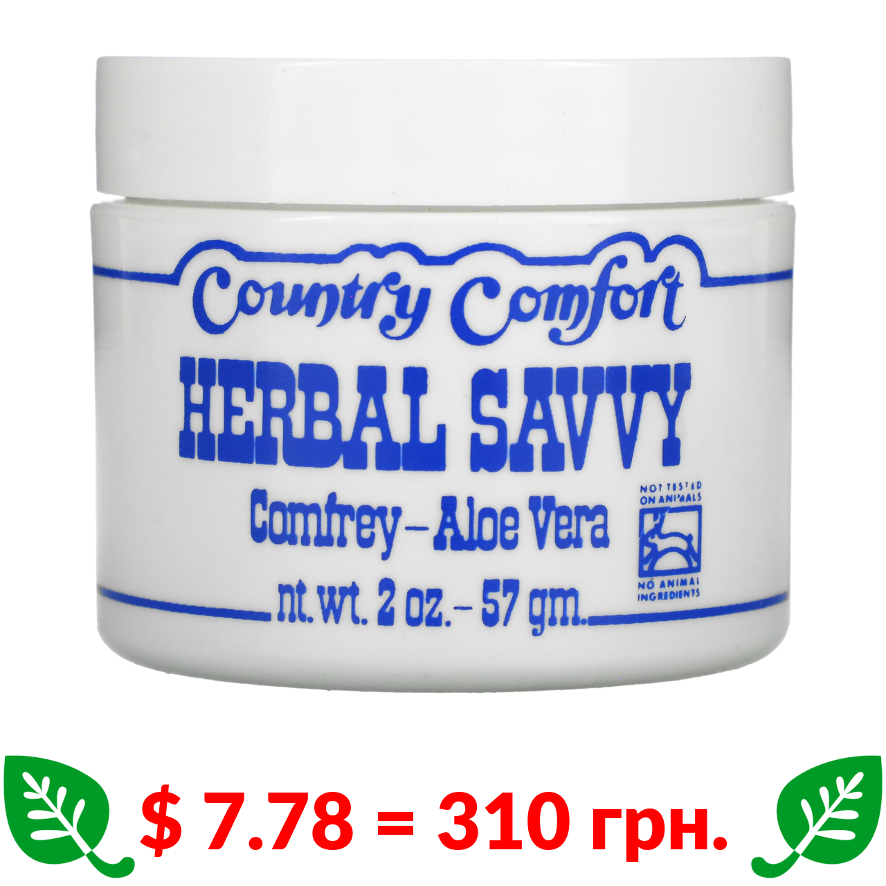 $ 7.78 = 310 грн. Country Comfort, Herbal Savvy, Comfrey-Aloe Vera, 2 oz (57 g)