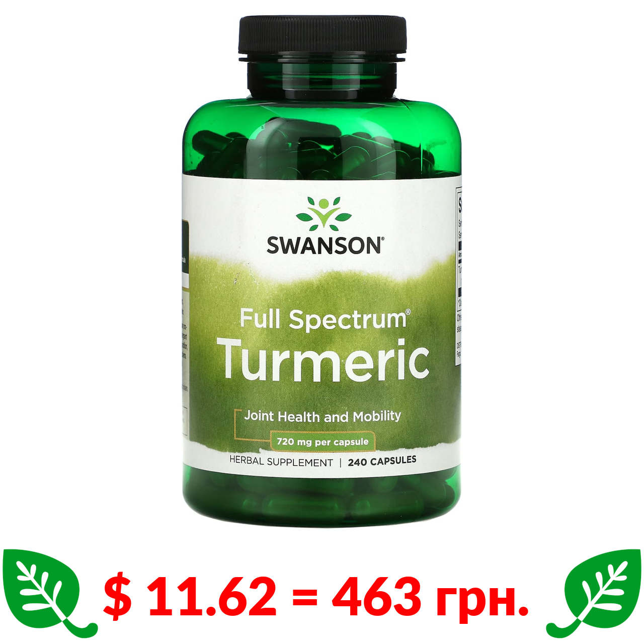 $ 11.62 = 463 грн. Swanson, Full Spectrum, куркума, 1440 мг, 240 капсул (720 мг у капсулі)