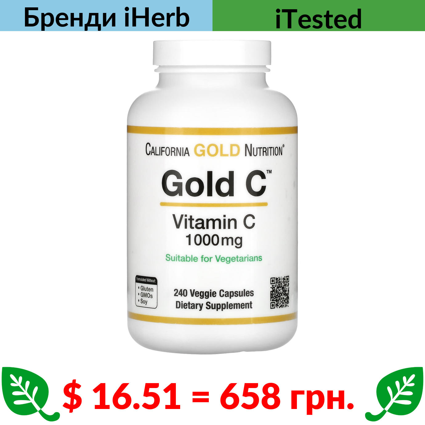 $ 16.51 = 658 грн. California Gold Nutrition, Gold C, вітамін C класу USP, 1000 мг, 240 вегетаріанських капсул