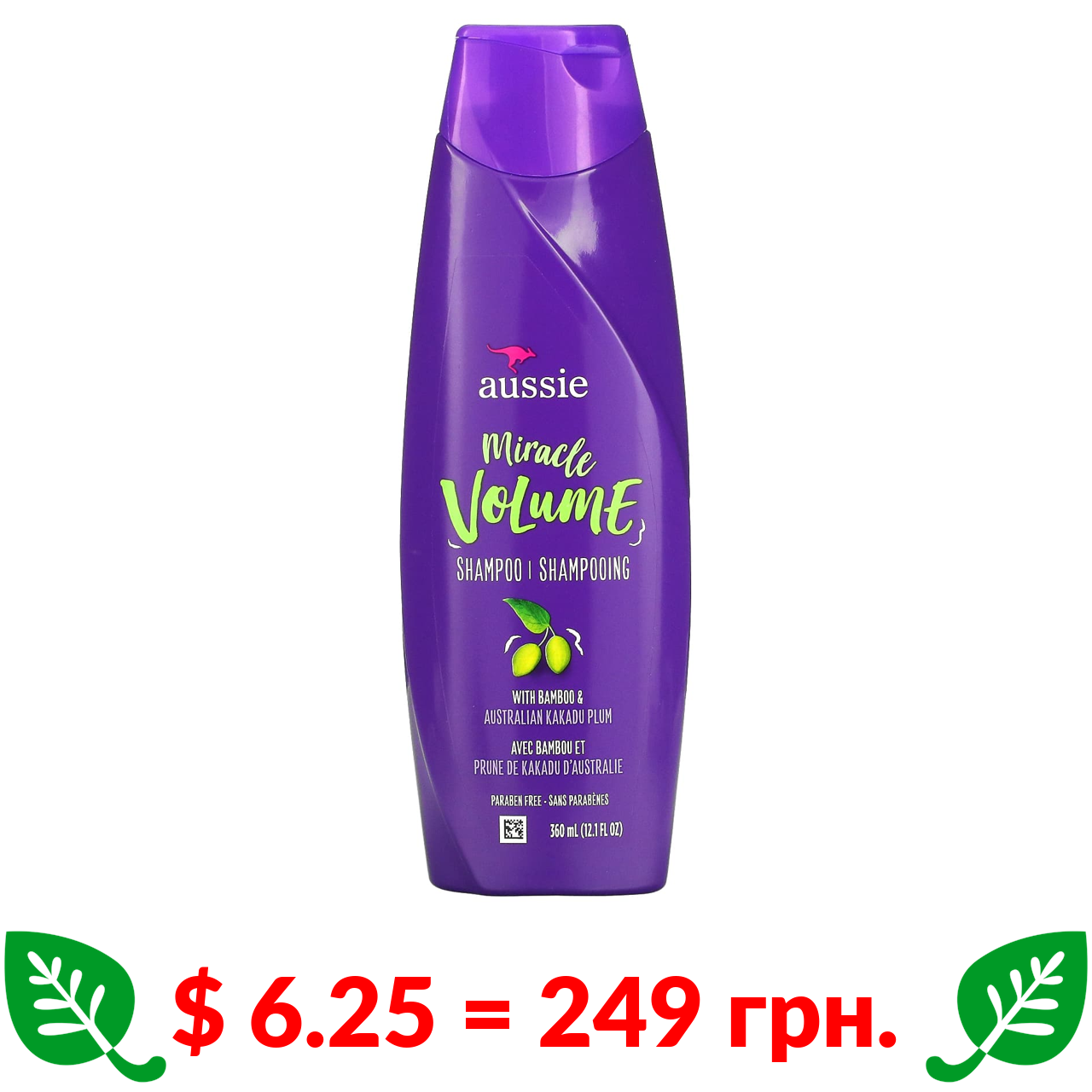 $ 6.25 = 249 грн. ????️ у кошику ????️ Aussie, Шампунь Miracle Volume, 12,1 рідкої унції (360 мл)