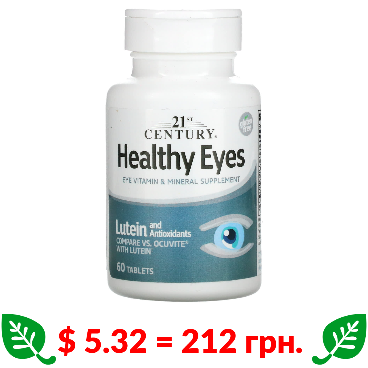 $ 5.32 = 212 грн. 21st Century, Healthy Eyes, комплекс для здоров’я очей із лютеїном, 60 таблеток