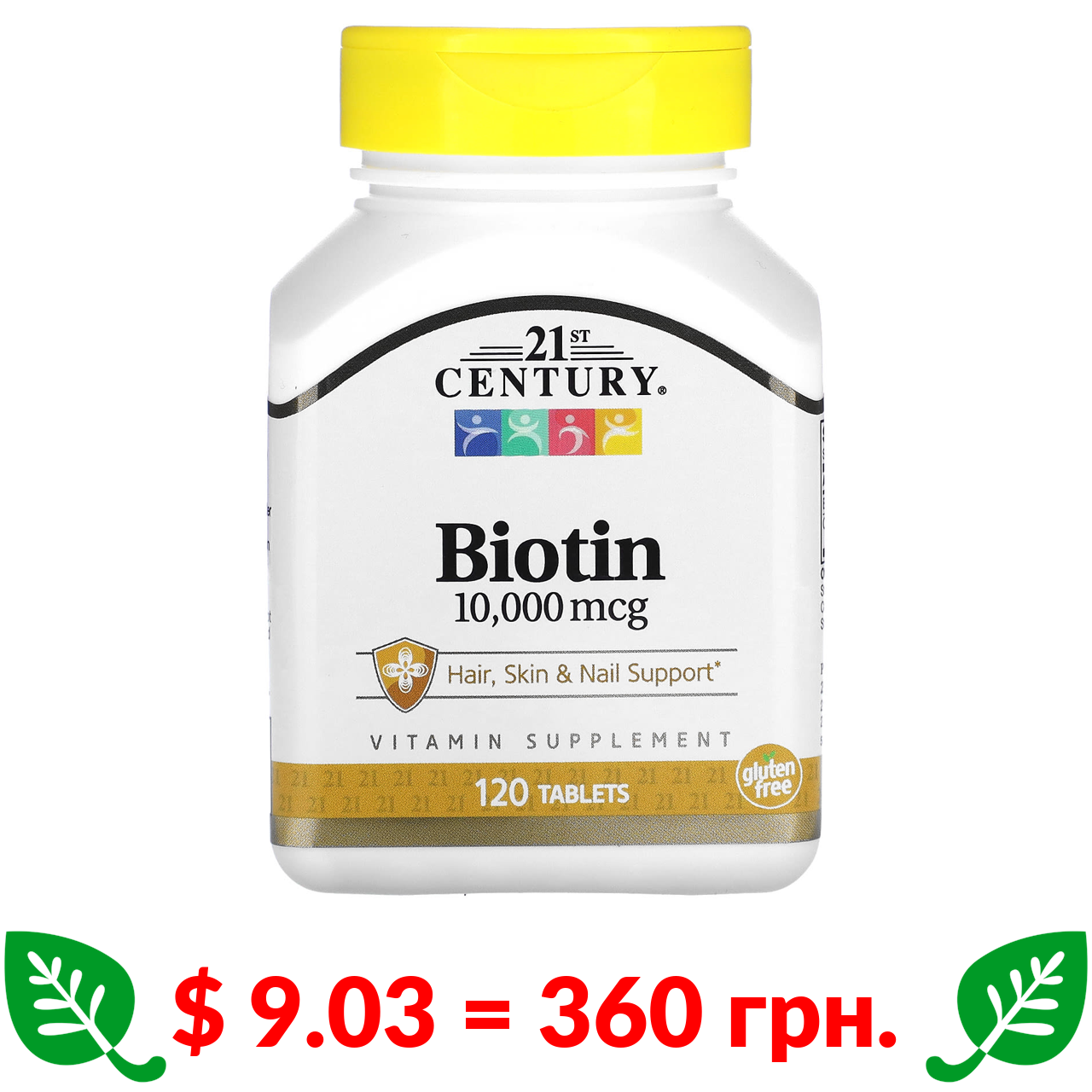 $ 9.03 = 360 грн. 21st Century, біотин, 10 000 мкг, 120 таблеток