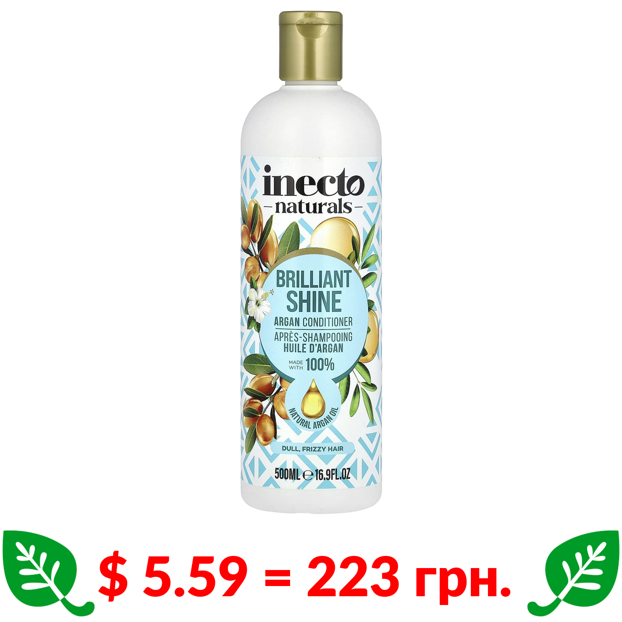 $ 5.59 = 223 грн. ????️ у кошику ????️ Inecto, Argan Conditioner, Brilliant Shine, Dull, Frizzy Hair , 16.9 fl oz (500 ml)