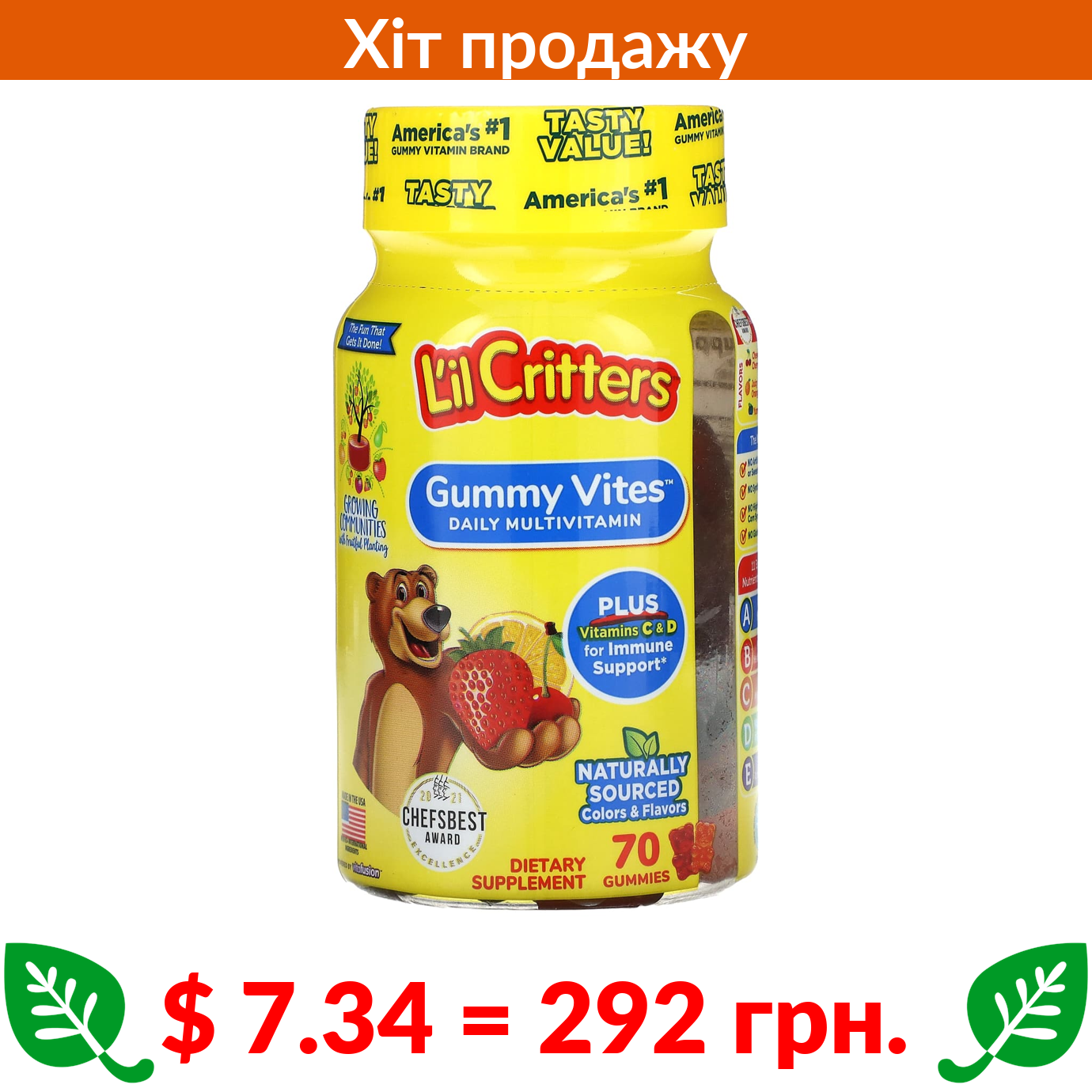 $ 7.34 = 292 грн. ????️ у кошику ????️ L’il Critters, Gummy Vites, комплекс жувальних мультивітамінів, 70 мармеладок