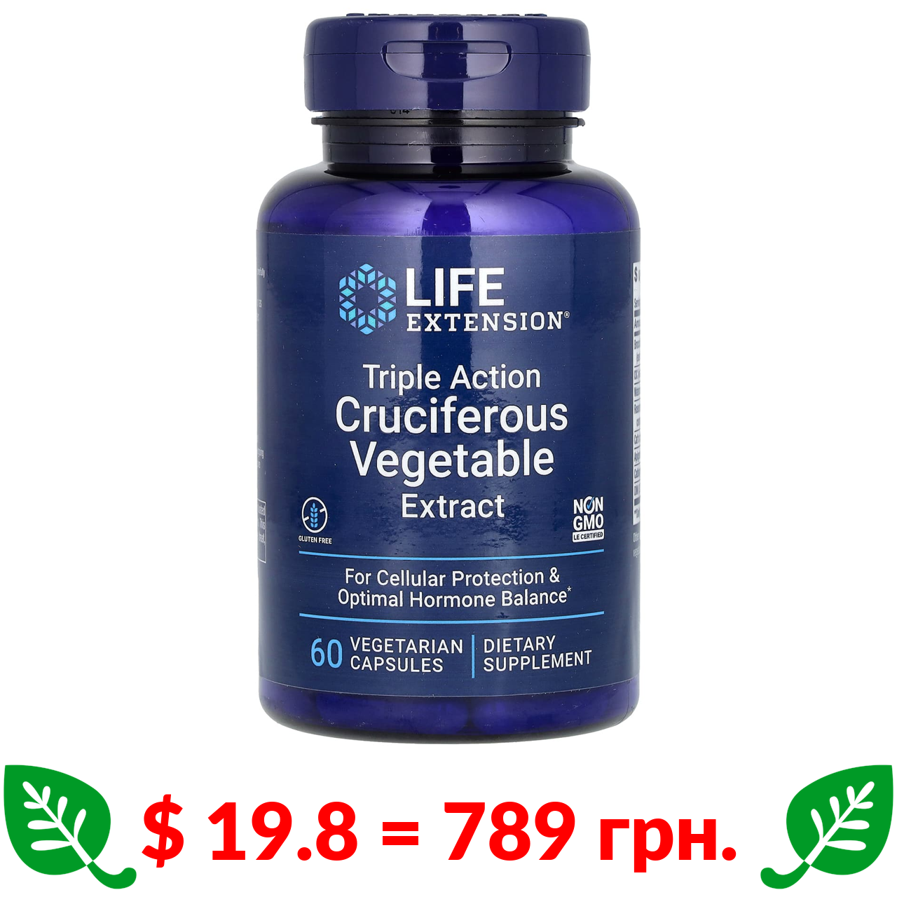 $ 19.8 = 789 грн. Life Extension, екстракт хрестоцвітих овочів потрійної дії, 60 вегетаріанських капсул