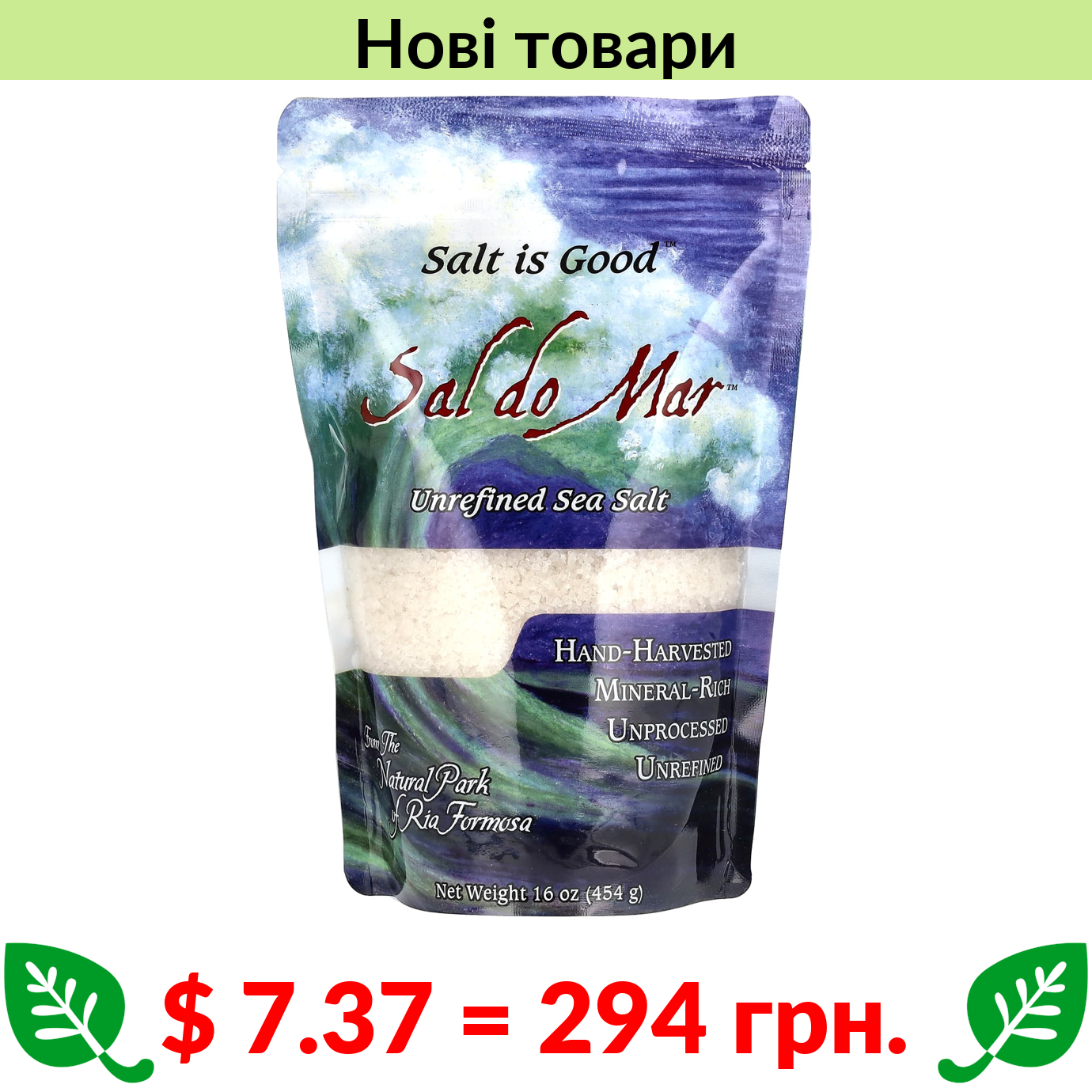 $ 7.37 = 294 грн. ????️ у кошику ????️ Mate Factor, Sal do Mar, нерафінована морська сіль, 454 г (16 унцій)