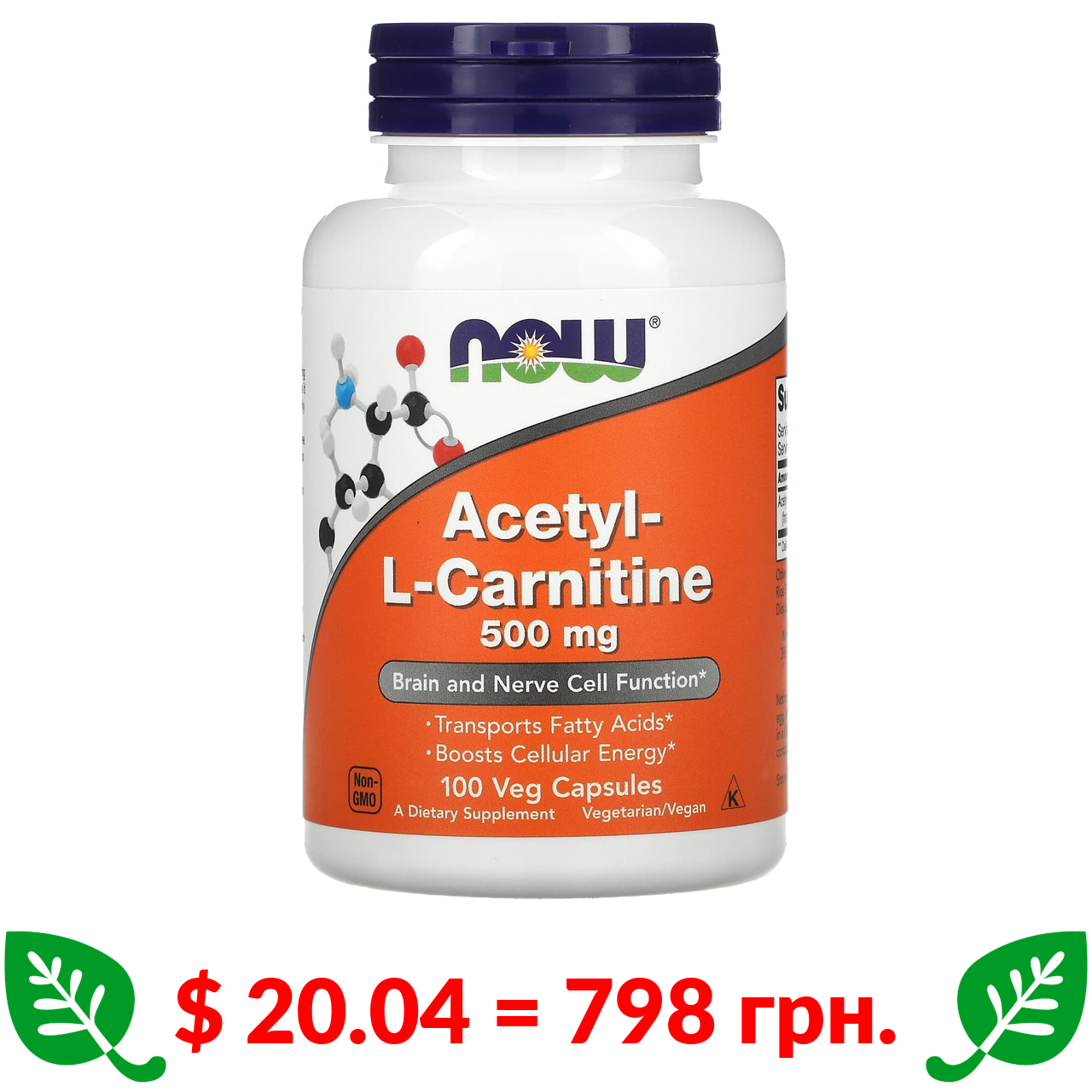$ 20.04 = 798 грн. Now Foods, ацетил-L-карнітин, 500 мг, 100 вегетаріанських капсул