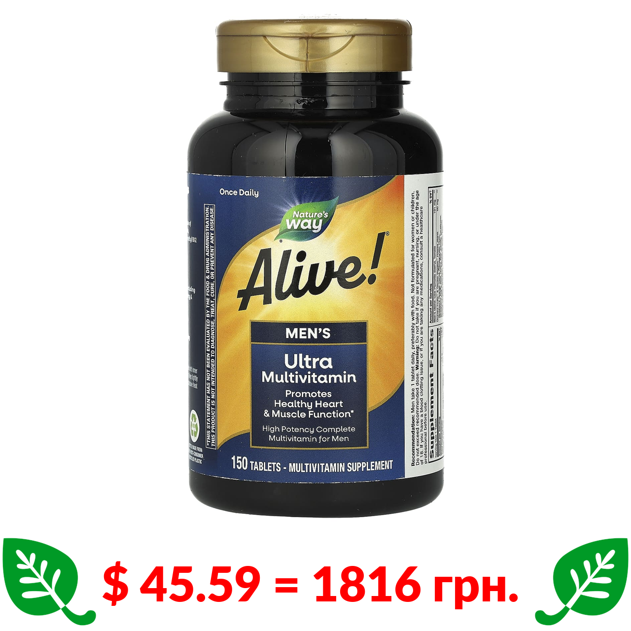 $ 45.59 = 1816 грн. Nature’s Way, Alive! ультрамультивітаміни для чоловіків, 150 таблеток