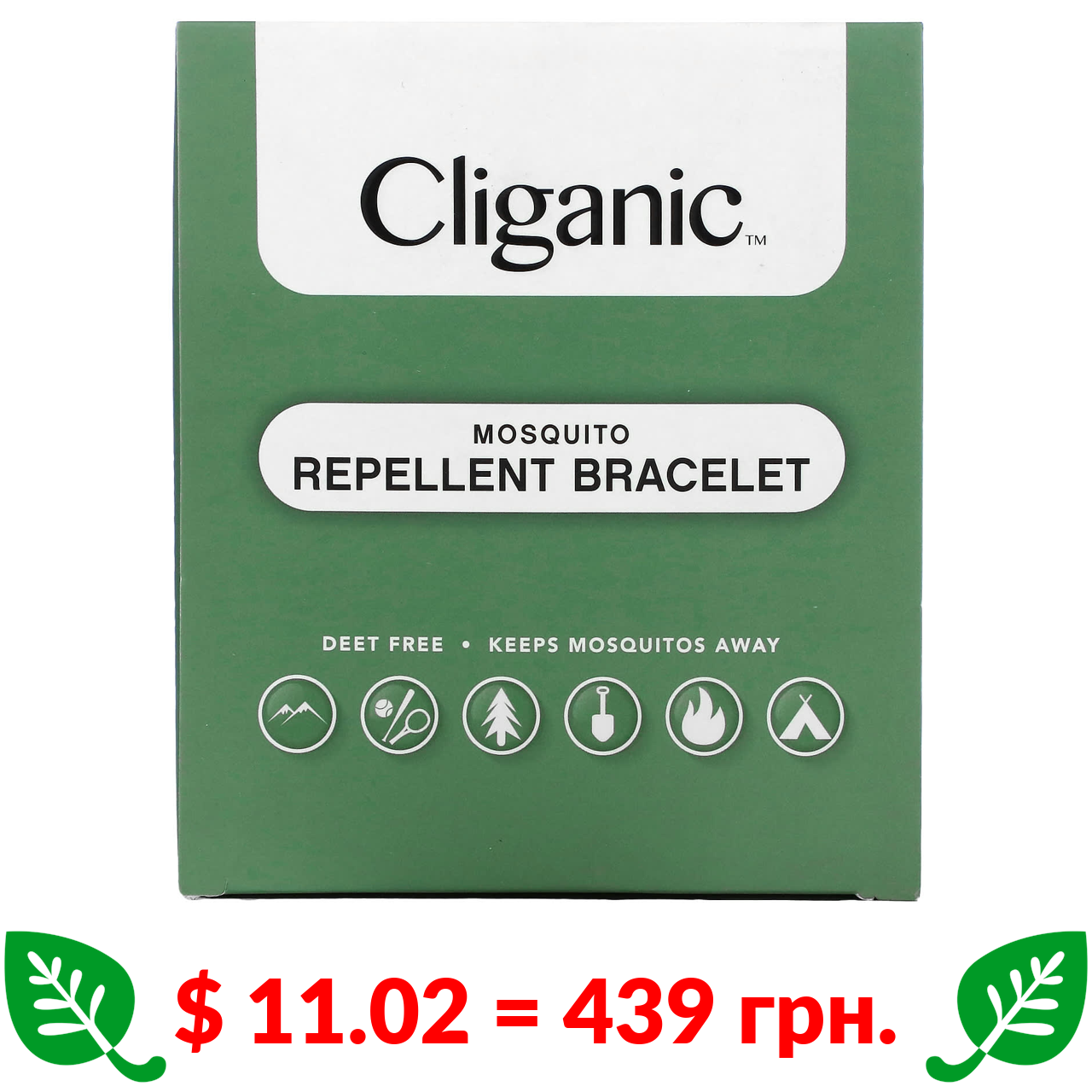 $ 11.02 = 439 грн. Cliganic, браслет від комарів, 10 шт. в упаковці