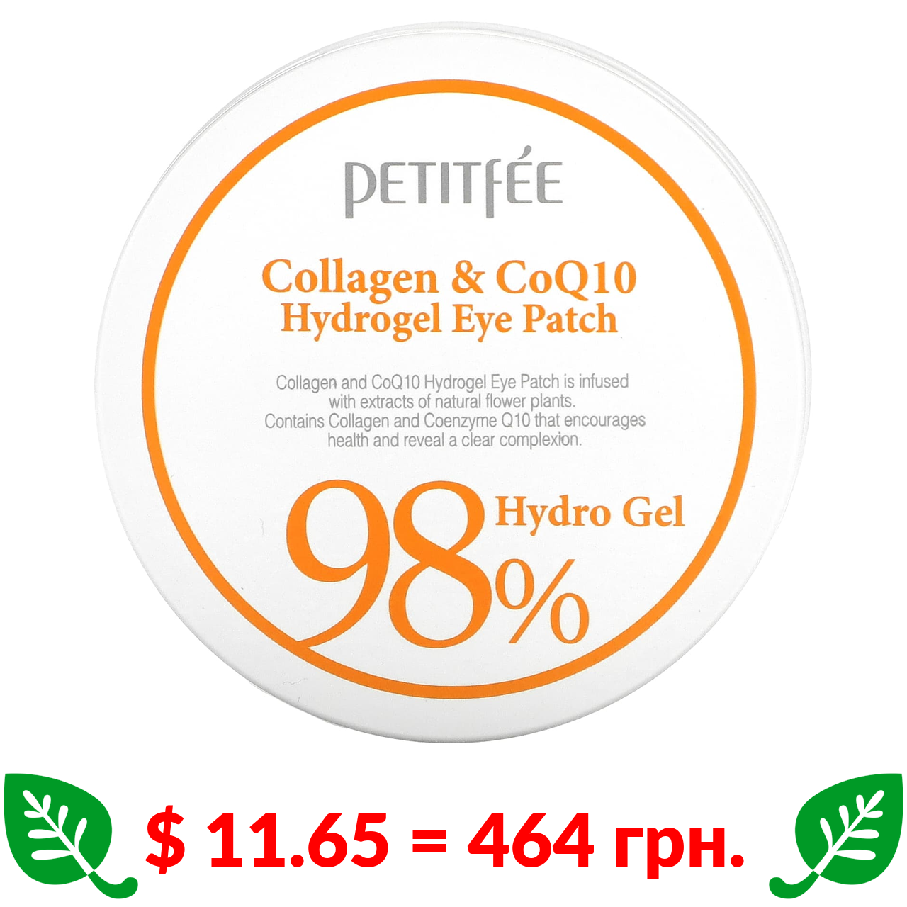$ 11.65 = 464 грн. Petitfee, гідрогелеві патчі для очей із колагеном і коензимом Q10, 60 патчів по 1,4 г