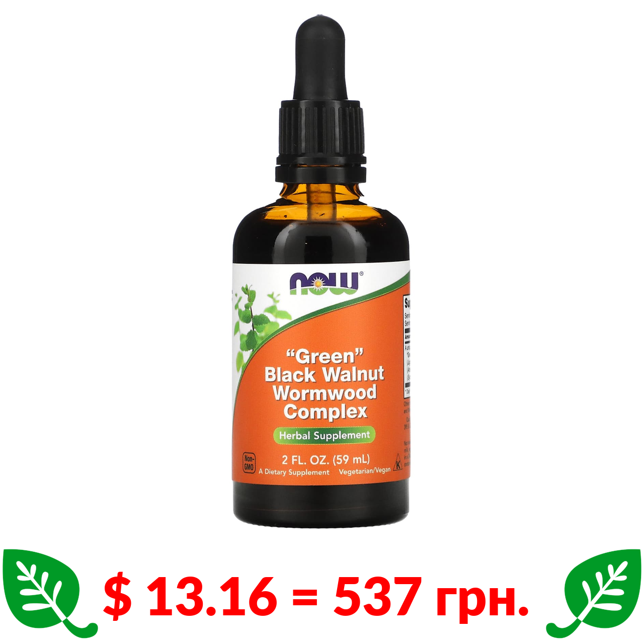 $ 13.16 = 537 грн. Now Foods, комплекс із незрілим чорним горіхом і гірким полином, 59 мл (2 рідк. унції)