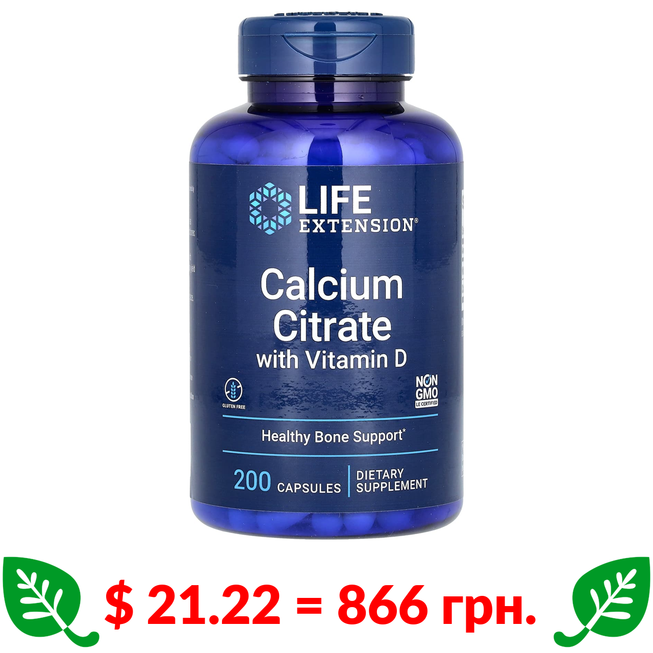 $ 21.22 = 866 грн. Life Extension, цитрат кальцію з вітаміном D, 200 капсул