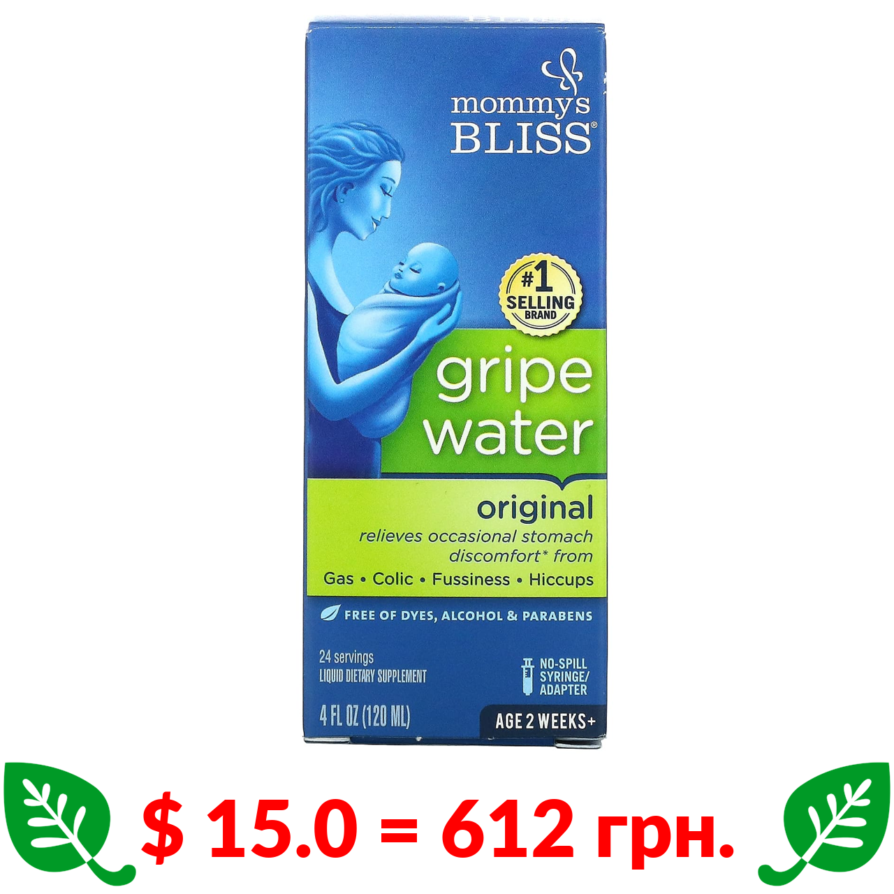 $ 15.0 = 612 грн. Mommy’s Bliss, Gripe water original, 120 мл (4 рідкі унції)
