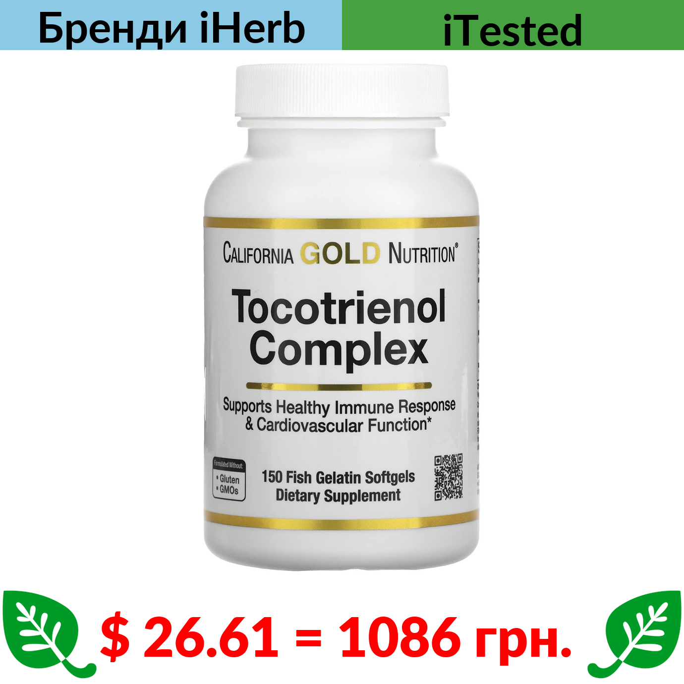 $ 26.61 = 1086 грн. ????️ у кошику ????️ California Gold Nutrition, комплекс токотриєнолів, вітамін Е та змішані токотриєноли, 150 капсул із риб’ячого желатину